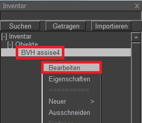 Um eine Animation zu bearbeiten, öffnen Sie Ihr Inventar, klicken Sie mit der rechten Maustaste auf eine BVH