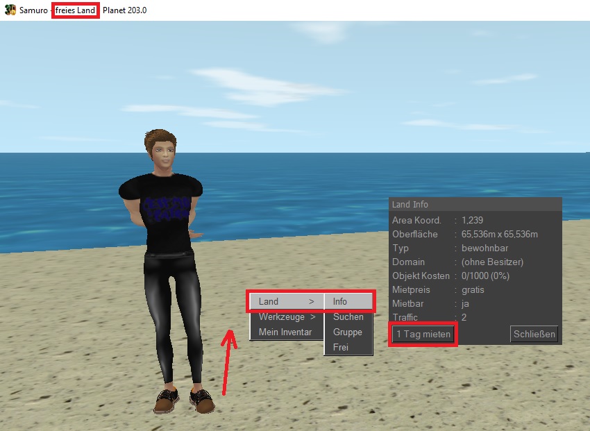 Klicken Sie mit der rechten Maustaste auf den boden und wählen Sie das Menü LAND > INFO