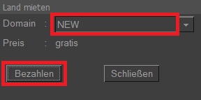 Wählen Sie das Domain NEW und klicken Sie BEZAHLEN (Keine Panik, Sie brauchen kein Geld, alles ist kostenlos auf Planet)