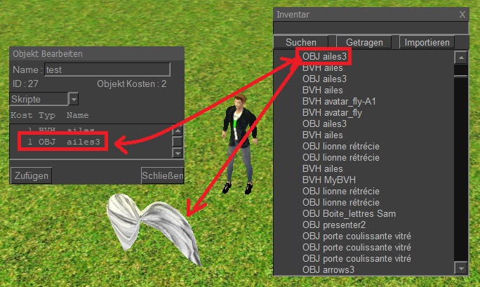 Objekte (OBJ) aus dem Inventar können in die Welt gezogen werden durch klicken ziehen und Loslassen der Maustaste.