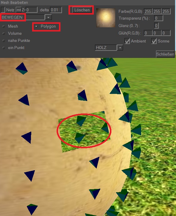 Um ein Polygon zu löschen, wählen Sie den Modus BEWEGEN, Option POLYGON,