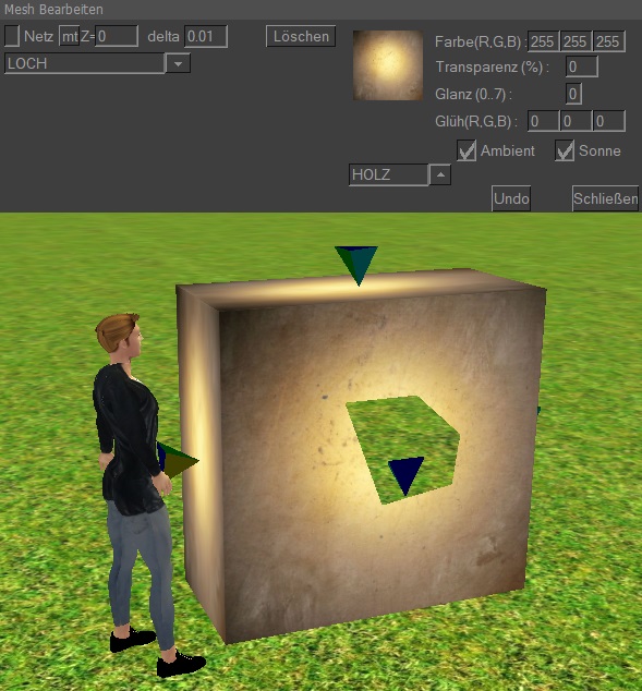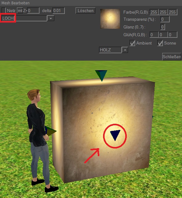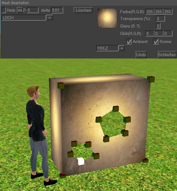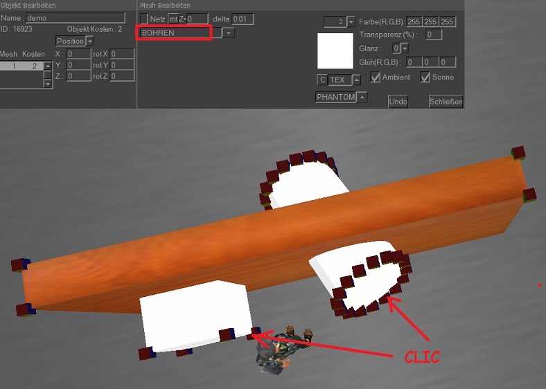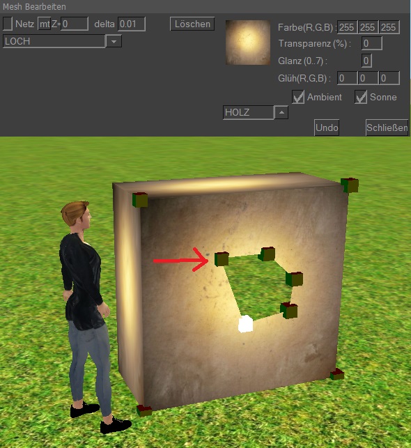 Um einen Punkt zu löschen klicken Sie auf den Button Löschen. Wenn Sie alle Punkte löschen verschwindet das Loch.