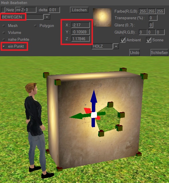 Sie können auch die Koordinaten X, Y, Z eingeben, um ihn an eine sehr genaue Position zu bringen.