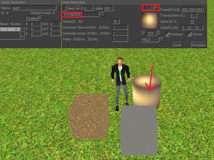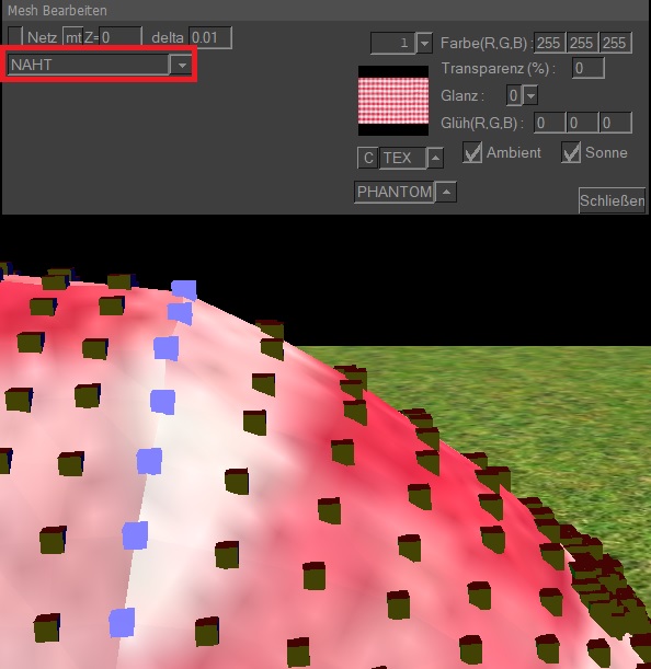 Um eine Textur zu ändern, wählen Sie die Nummer aus der Liste (1, 2, ..) und klicken dann auf das Quadrat, um eine neue Textur auf Ihren PC zu holen.