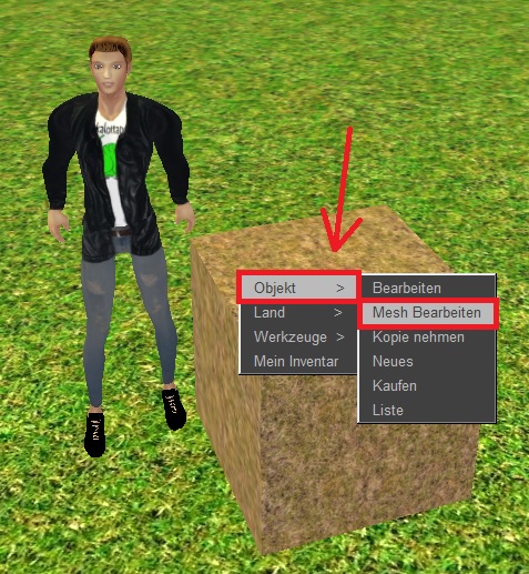 Klicken Sie mit der rechten Maustaste auf den Würfel, den Sie im vorigen Kapitel erstellt haben, und wählen Sie OBJEKT > MESH BEARBEITEN ...