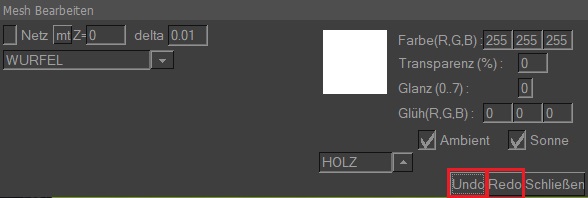 Wenn Sie einen Fehler gemacht haben, können Sie jederzeit auf UNDO klicken, um einen Schritt zurück zu gehen, oder auf REDO, um vorwärts zu gehen. Nehmen Sie auch regelmäßig eine Kopie Ihres Objektes in Ihrem Inventar.